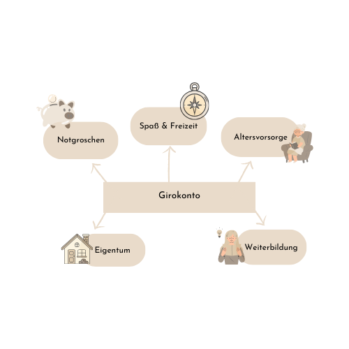 Was ist dir wichtig? Splitte deinen Sparbetrag für die WIRKLICH WICHTIGEN DINGE des Lebens & erstelle darauf basierend dein Kontenmodell! Hier eine Inspiration: